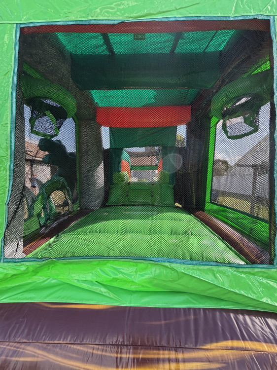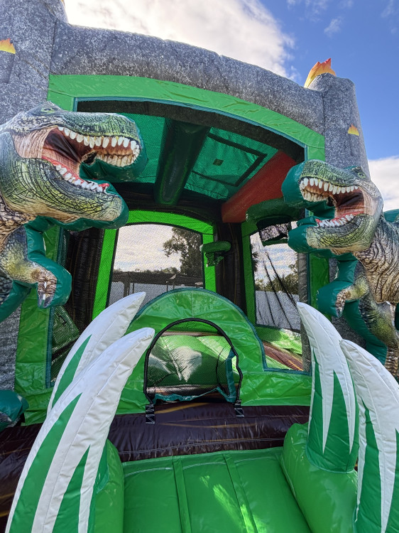 Brings nonstop action to backyard parties with the Dino Dive Combo Wet/Dry. This versatile inflatable combines a roomy bouncing area, an engaging slide, and a splash-ready landing so guests can play wet or dry. The safety-enclosed bounce zone gives kids a secure space to jump, while bright, playful graphics add a fun, kid-friendly vibe to any celebration. Easy to convert between wet and dry setups, it works great for birthday parties, summer events, and neighborhood gatherings. The compact footprint fits most yards without sacrificing play space. Perfect for active kids who want sliding thrills and bouncing fun in one all-in-one unit.